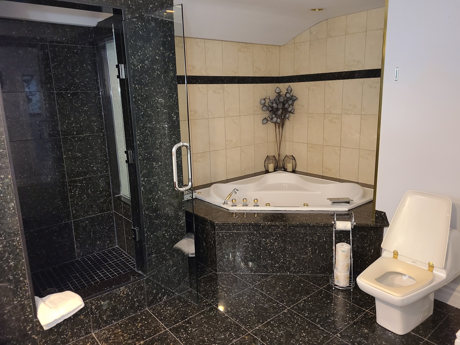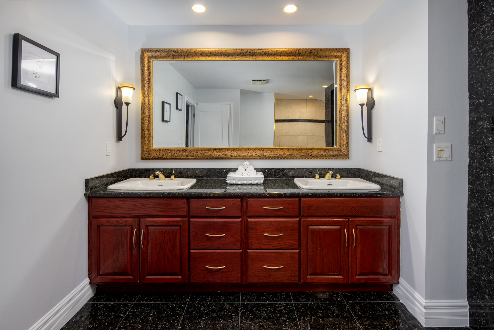 • Largest bathroom - across the hall • • Bathroom includes Jacuzzi tub, shower and double sinks - towels included •